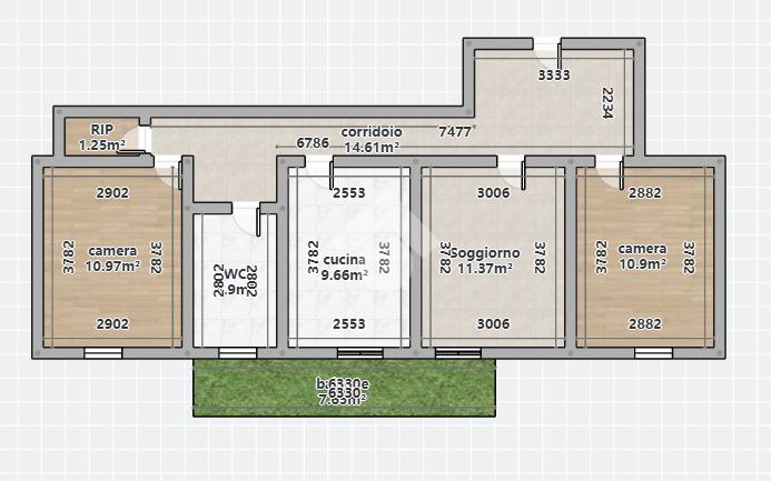 L’ingresso si apre su un disimpegno che conduce alla zona giorno, composta da soggiorno e cucina abitabile, entrambi con accesso diretto al balcone, garantendo una buona luminosità agli ambienti.