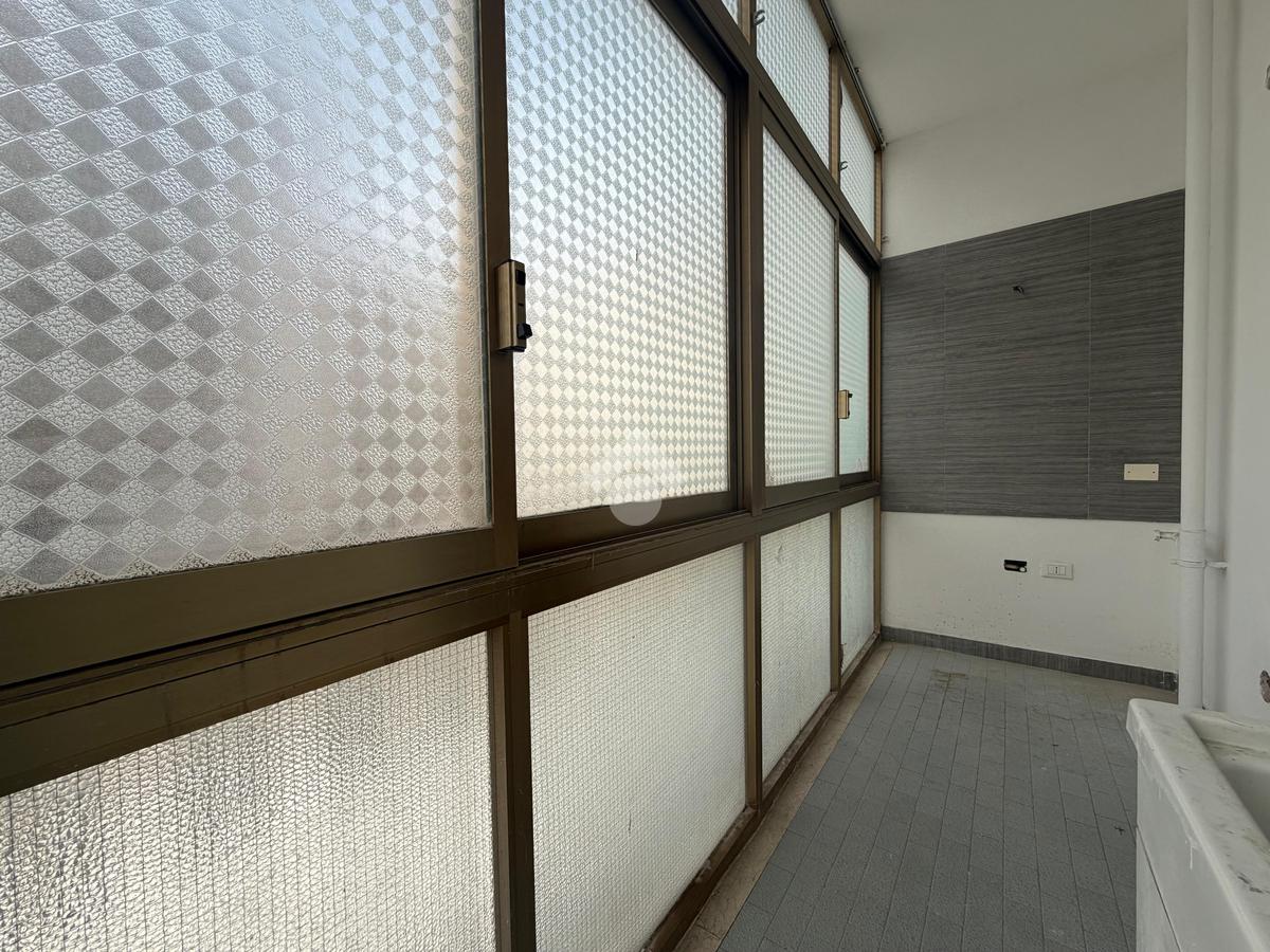 L’ingresso si apre su un pratico disimpegno che conduce alla cucina abitabile, resa ancora più funzionale dalla presenza della veranda annessa e del balcone.